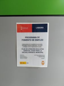 El expediente ECOVID/2020/448/03 concede al Ayuntamiento de Monforte del Cid una subvención por importe de 31.235,08 € destinada a la contratación de personas desempleadas de al menos 30 años como consecuencia de la coyuntura derivada por la COVID 19, para la realización de obras o servicios de interés general; con este programa se ha contratado a dos trabajadores para realizar acciones de prevención frente a la COVID 19 en la Escuela Infantil Municipal con los puestos de técnico y auxiliar de educación con una duración prevista de 6 meses.
