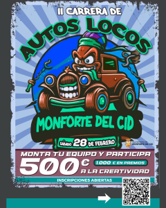 El Ayuntamiento de Monforte del Cid ha abierto el plazo de inscripción para participar en la II Carrera de Autos Locos, una de las citas más originales y divertidas del calendario festivo local, que se celebrará el sábado 28 de febrero de 2026, con motivo del Carnaval.