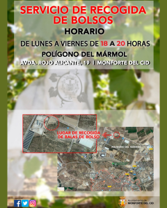 El punto de recogida estará ubicado en la Avda. Rojo Alicante, 19 (Polígono del Mármol) y funcionará de lunes a viernes, en horario de 18:00 a 20:00 horas.