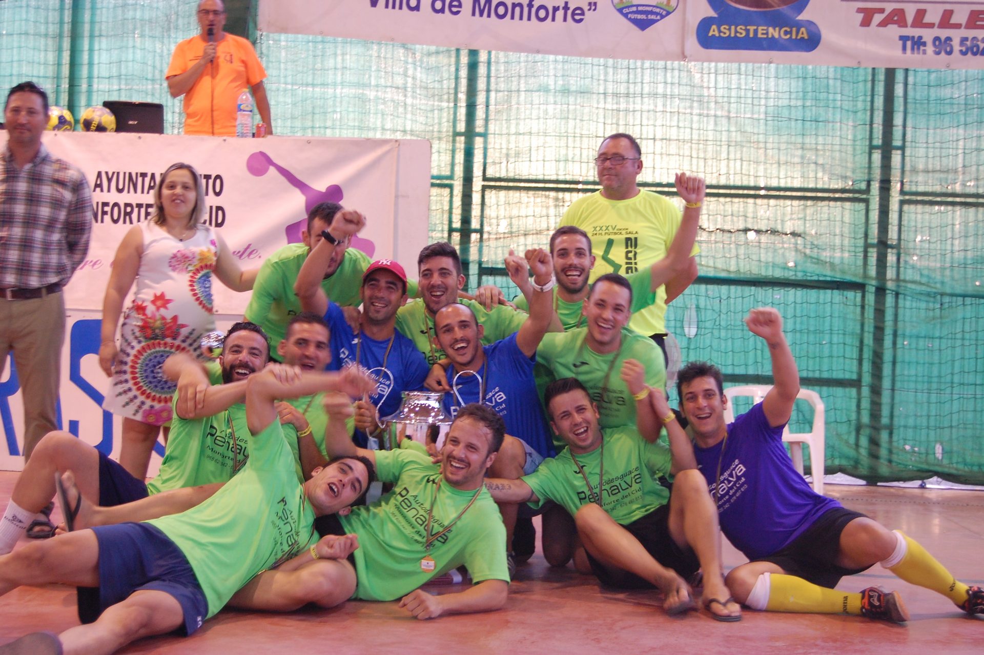 La final comenzó con un gol de Alberto Miralles que adelantó a Autodesguaces Penalva, poco después Adri Pastor (el gol en persona) empató para Radio Aspe. Siguió la alternancia entre ambos equipos, ya que Carlos Lara (inmenso de nuevo en una final) volvió a adelantar a Autodesguace Penalva tras una gran jugada individual y de nuevo Adri Pasor empató para Radio Aspe, esta vez de penalti. Con empate a dos, y a pocos minutos del final, Jesús Albert marcó el auténtico golazo de estas 24 horas, una volea desde fuera del área que adelantaba de nuevo a Autodesguace Penalva. Y cuando ya se daba por finalizado el partido, Adri Pastor marcaba su tercer gol y llevaba la final a los penaltis. En la tanda de penaltis, una parada del portero local Juanma Saez “Chema” dio el triunfo al equipo monfortino, tras haber llegado a las últimas tres finales.
