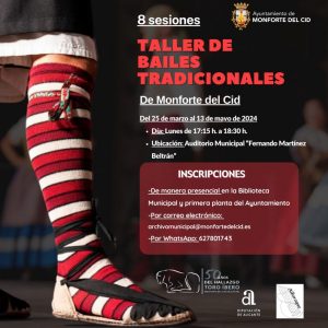 Desde la Concejalía de Cultura del Ayuntamiento de Monforte del Cid, presentamos el taller de Bailes Tradicionales de Monforte del Cid.
