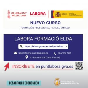 Los interesados pueden inscribirse a través del portal web de PUNT LABORA o directamente en el centro LABORA Formació de Elda.