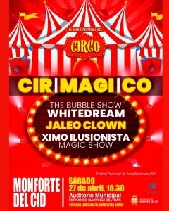 El Circo Mágico desembarcará en el escenario del Auditorio Municipal de Monforte del Cid el próximo sábado 27 de abril a las 18:30 horas. Con él, llega una experiencia que hará reír a carcajadas tanto a grandes como a pequeños.