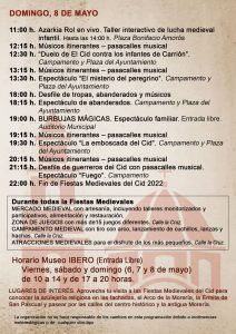 Las Fiestas Medievales del Cid se celebran anualmente entre los meses de marzo y abril y participan las concejalías de turismo, cultura y comercio.
