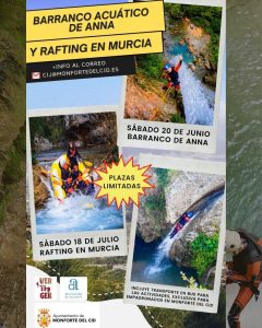 El Ayuntamiento informa sobre la próxima actividad incluida en el programa “Monforte Extremo”, correspondiente al Barranco Acuático de Anna, que se celebrará el sábado 20 de junio.