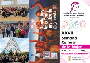 La Asociación Amas de Casa, Consumidores y Usuarios de Monforte del Cid organiza del 2 al 8 de marzo de 2026 la XXVII Semana Cultural de la Mujer, una cita ya consolidada en el calendario local con motivo del Día Internacional de la Mujer, que se conmemora el 8 de marzo.