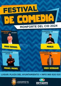 La concejalía de Cultura del Ayuntamiento de Monforte del Cid apuesta por un «Festival de Comedia» para este verano 2024.