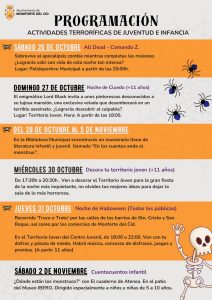 - El lunes 30 de octubre, los jóvenes mayores de 11 años tendrán la oportunidad de participar en la decoración del Territorio Joven, creando un ambiente terrorífico para la gran fiesta de Halloween.
