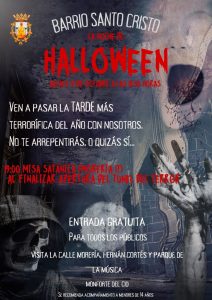 - El martes 31 de octubre, día de Halloween, la Comisión de Fiestas de Santo Cristo organizará su Túnel del Terror, que abrirá sus puertas a las 19:00. Previamente, desde las 18:00, el barrio de San Roque, junto a su Comisión de Fiestas, se sumergirá en la temática de Halloween con una ambientación especial. Además, 10 comercios locales se sumarán al tradicional recorrido de «Truco o Trato», en el que los niños y niñas del municipio podrán recolectar dulces por las calles de los barrios de Santo Cristo y San Roque.
