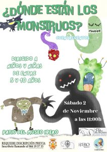 - Finalmente, el 2 de noviembre, los más pequeños, de entre 5 y 10 años, podrán disfrutar de un cuentacuentos infantil lleno de historias de fantasía y monstruos, cerrando así la semana de actividades en el patio del museo. (Requiere inscripción previa llamando a 96619 57 33)