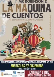La espera ha terminado, y la emoción está a punto de desbordarse en Monforte del Cid con la llegada de “Mr. Robinson y la Máquina de Cuentos”, un espectáculo teatral musical que deslumbrará a toda la familia.