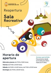 Equipada con televisión, sofás, mesas, futbolín, mesa de billar y videojuegos, la Sala Recreativa proporciona un espacio seguro y divertido para que los jóvenes de 12 a 17 años de Monforte del Cid se reúnan, socialicen y se diviertan, de forma segura.