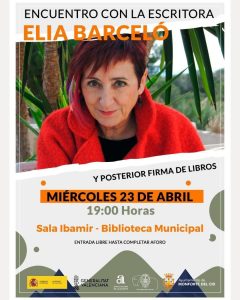 La escritora estará acompañada por Juan Vera, miembro del Centro de Estudios Literarios Elia Barceló de Elda (CELEBE) y profundo conocedor de su obra, quien contribuirá al coloquio aportando claves y lecturas sobre el universo literario de Barceló.