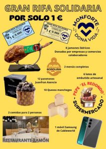 El precio de la camiseta es de 7 euros, de los cuales 2 euros se destinan a papeletas para la rifa. En esta se sortearán premios como jamones, quesos, lotes de embutidos, panetones, un teléfono móvil y comidas en restaurantes locales, la mayoría de ellos donados por negocios y establecimientos del municipio.