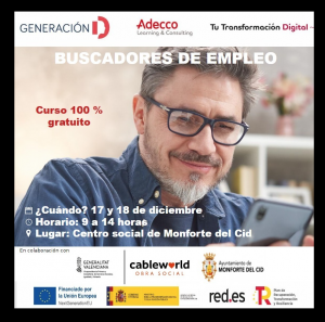 El segundo curso, “Buscadores de empleo”, tiene lugar los días 17 y 18 de diciembre, también de 9:00 a 14:00 horas. Esta formación se centra en el manejo de portales de empleo, la inscripción en ofertas, la mejora del currículum y el conocimiento de los recursos digitales disponibles para la búsqueda activa de trabajo.