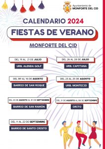 Finalmente, animó a todos los vecinos y vecinas del municipio a disfrutar del verano en Monforte del Cid, participando en las fiestas organizadas por la concejalía de Fiestas del Ayuntamiento, con la colaboración de las Comisiones de Fiestas / Asociaciones de cada barrio, pedanía y urbanización.