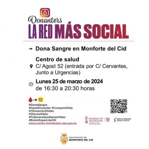 Desde la Concejalía de Sanidad del Ayuntamiento de Monforte del Cid, se invita a todos los ciudadanos a participar en esta noble causa que salva vidas.