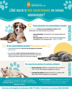 Desde la concejalía de Protección Animal del Ayuntamiento de Monforte del Cid, se informa a todos los ciudadanos sobre las medidas a seguir en caso de encontrarse con un animal abandonado.
