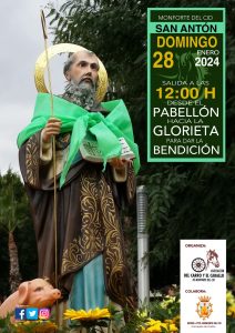 El próximo domingo 28 de enero se llevará a cabo la tradicional bendición de animales con motivo de la festividad de San Antón (17 de enero). Un año más, la bendición de animales se realizará en la Glorieta y previamente se realizará un pasacalles que saldrá del Pabellón Municipal a las 12:00 horas.
