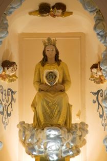 La Virgen de Orito La devoción a la Virgen de Orito tiene su origen en el año 1555, cuando Fray Jorge halló dentro de sus corporales “una imagen de bulto, muy pequeña y devota de Nuestra Señora”. Dicha imagen da nombre al santuario, originariamente denominado de “Lorito” o “Loreto”, y que posteriormente evolucionaría a la denominación actual “Orito”. Su particularidad reside tanto en su hallazgo como en el hecho de que se trate de una de las imágenes de la Virgen más pequeñas del mundo (42 milímetros). Son muchos los devotos de la Imagen y varios los milagros atribuidos a la misma, recogidos en un libro escrito en el año 1716 por fray Pedro Ortega, guardián del santuario. También es recurrente en la documentación del Archivo Municipal, la mención a la Imagen de Nuestra Señora de Orito que era sacada en rogativa hasta la Iglesia Parroquial de Monforte para pedir lluvia en las épocas de sequía. Esta particular Virgen de Orito puede visitarse en el santuario de Nuestra Señora de Orito y el 8 de septiembre, día de su festividad, es sacada en procesión para devoción de los feligreses.