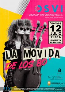 La Concejalía de Cultura del Ayuntamiento te invita el próximo viernes 12 de julio a las 21:00 h en la Glorieta Municipal a disfrutar del concierto “LA MOVIDA DE LOS 80″ de la Orquesta Sinfónica de Villena (OSVI), dirigida por Isidro Alemán Sanchís.